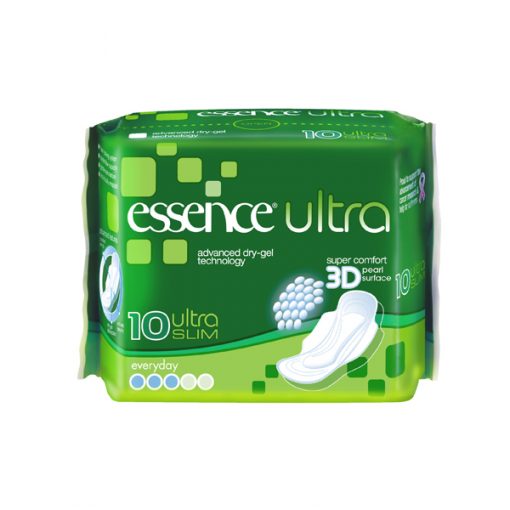 Essence Ultra absorbs reliably for average daily use. The pad contains a layer